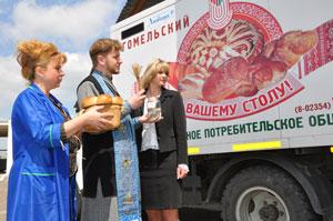 Возрождая старинные славянские традиции, работники Ельского хлебозавода пригласили для освящения здания настоятеля Ельской Свято-Троицкой церкви иерея отца Георгия.
