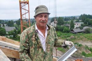 В бригаде плотников на строительстве этого жилого дома трудится Николай Ильич Левковский. Устройство шиферной кровли и установка дверей, монтирование наружного и внутреннего водостока – вот тот неполный перечень работ, которые осуществляет плотницкая бригада, в том числе и Николай Ильич.