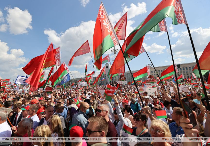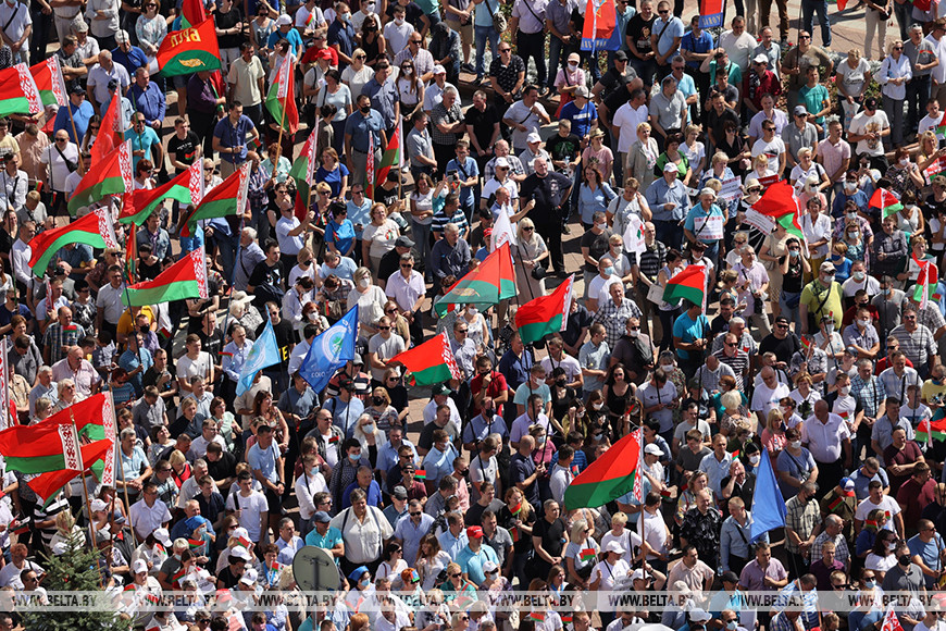 «Мы, народ Беларуси, сделали свой суверенный, безоговорочный и безапелляционный выбор — за независимость, процветание и благополучие нас и наших детей. Но эту победу у нас хотят украсть, а каждого, кто сделал честный выбор, оболгать, выставить врагом в глазах народа. Внешние силы разжигают пожар непонимания и агрессии, сталкивают лбами нас, белорусов, чтобы в этом хаосе разделить, разграбить то, что создавалось тяжелым трудом наших отцов и дедов», — зачитал текст петиции председатель общественного объединения.