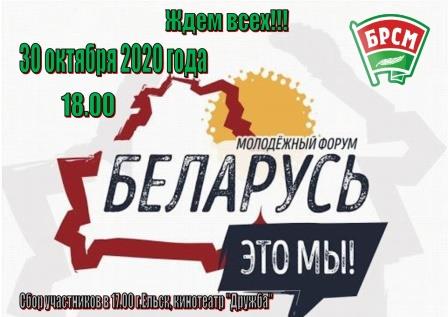 В Ельске 30 октября пройдет молодежный форум «Беларусь — это мы!»