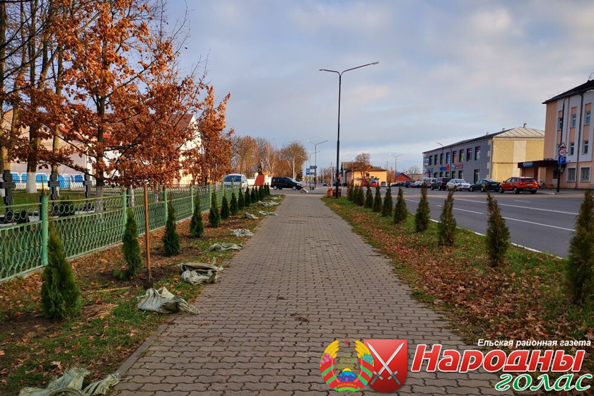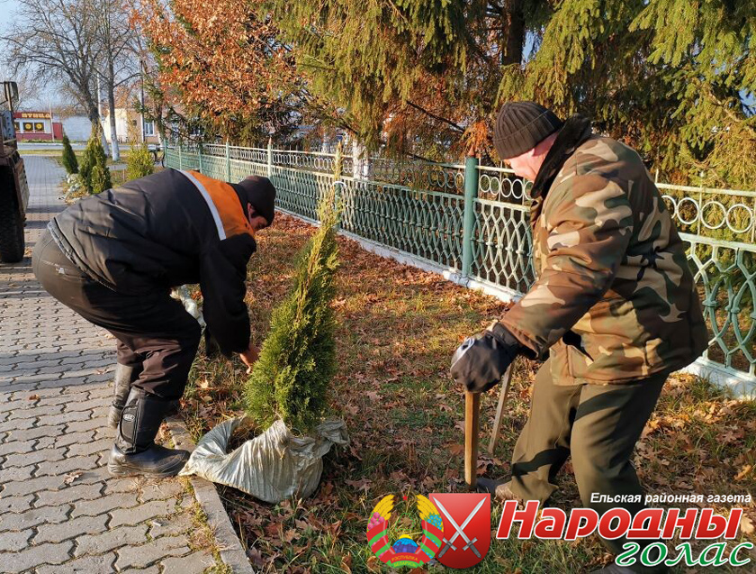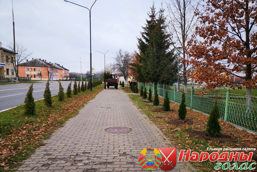 ФОТОФАКТ: Коммунальники продолжают высаживать туи в Ельске