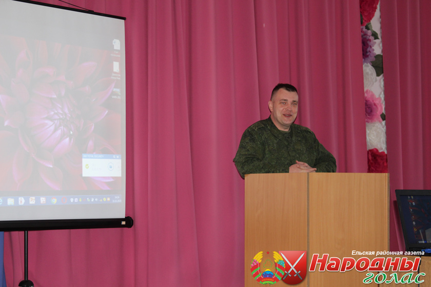 С ребятами из средней школы № 2 г. Ельска встретились представитель Военной академии Республики Беларусь и начальник обособленной группы Ельского района Военного комиссариата Мозырского, Ельского и Наровлянского районов Николай Хорьков.