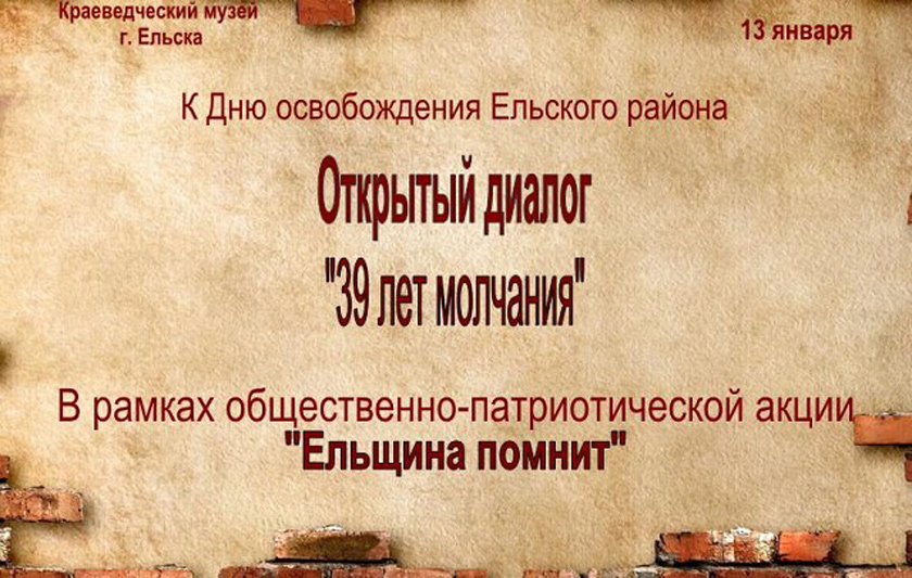 АНОНС: Открытый диалог «39 лет молчания» пройдет 13 января в Ельском краеведческом музее
