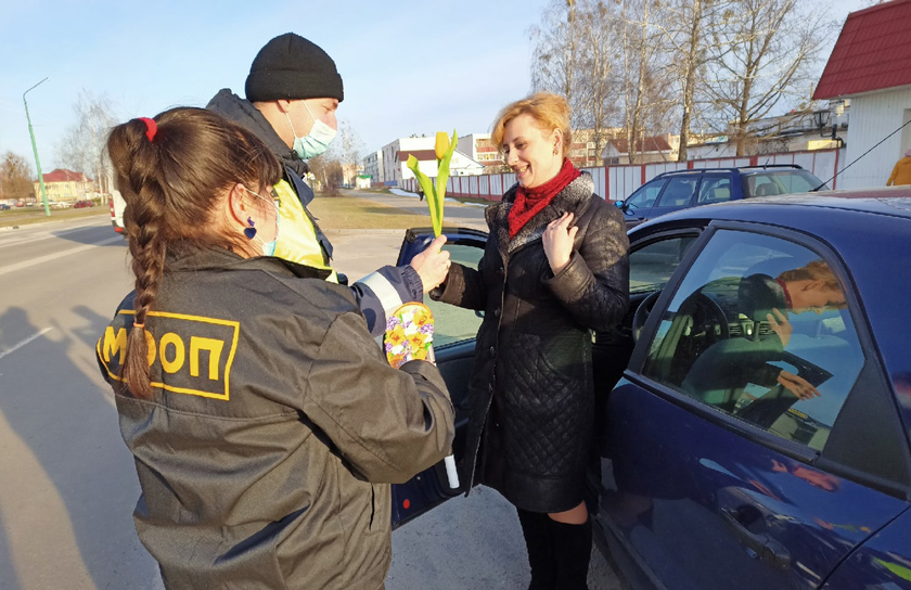 В преддверии  Дня женщин  Молодёжный отряд охраны правопорядка (МООП) совместно с сотрудниками ГАИ поздравили женщин, которые управляют транспортным средством.