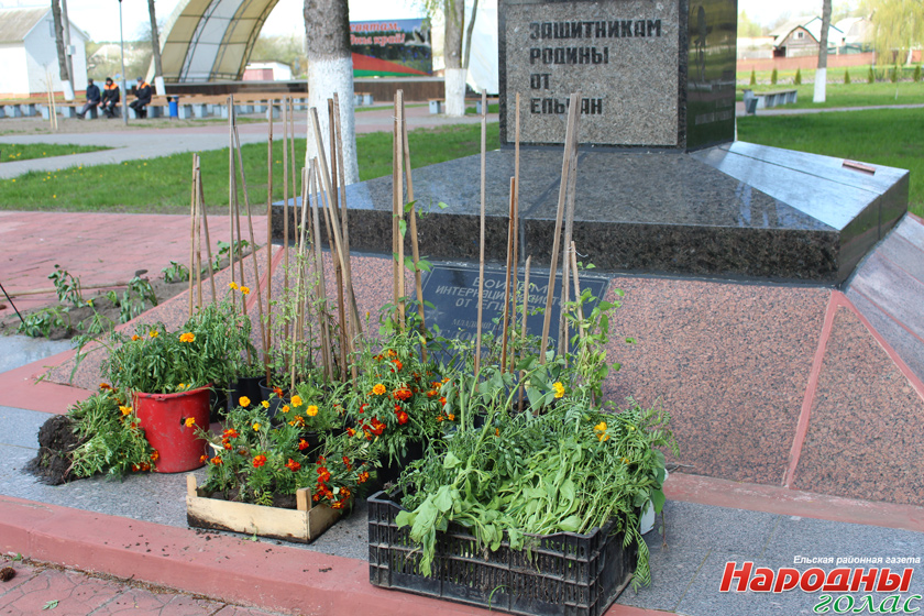 Ельск и ельчане готовятся отпраздновать День Великой Победы — 9 Мая. Сегодня у обелиска защитникам Родины в городском сквере г. Ельска благоустраивают клумбы, высаживают цветы сортов сальвия, чернобривцы и др.