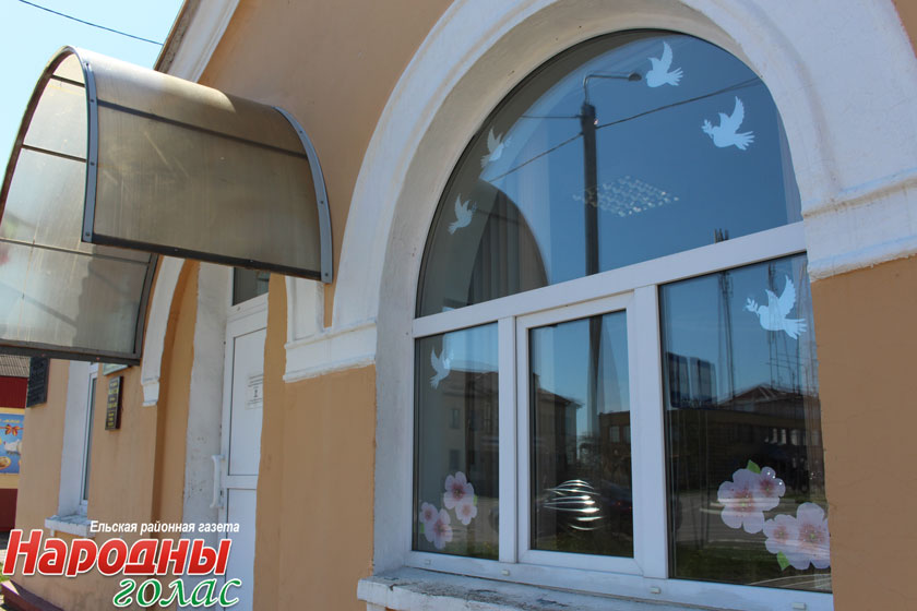 Организации Ельщины начали украшать свои окна голубками и яблоневым цветами — символами победного мая.