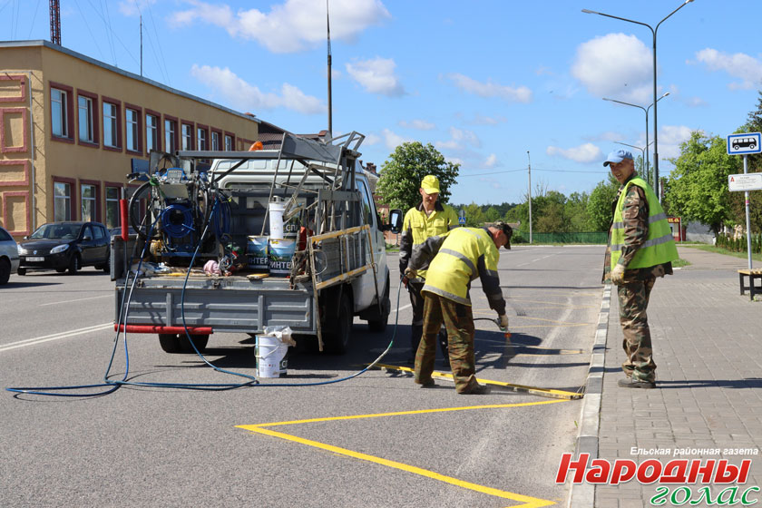 ФОТОФАКТ: В центре Ельска обновляют дорожную разметку