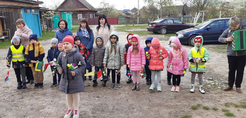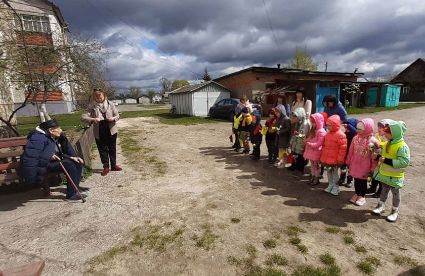 Воспитанники яслей-сада №2 г. Ельска поздравили ветерана Великой Отечественной войны Григория Степановича Приходько с наступающим праздником – Днём Победы!