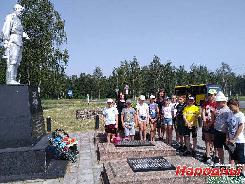 Литературно-полевой привал «Пусть мужество ваше нам станет примером», посвященный 80-летию со дня начала Великой Отечественной войны, организовали для ребят из оздоровительного лагеря «Истоки» районной гимназии сотрудники Ельской районной библиотеки. Ребята посетили братскую могилу воинам-десантникам (на фото) и памятник в деревне Жуки.