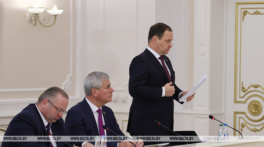 Глава правительства рассказал, что на совещании в том числе было обсуждено недавнее принятие западными странами очередного пакета санкций в отношении Беларуси. Он отметил: белорусская сторона неоднократно предупреждала партнеров, что этого делать не стоит. «Во-первых, это нелегитимно. Во-вторых, от этого страдают граждане, о которых они якобы пекутся, предприятия. Но тем не менее эти решения приняты», — констатировал Роман Головченко.