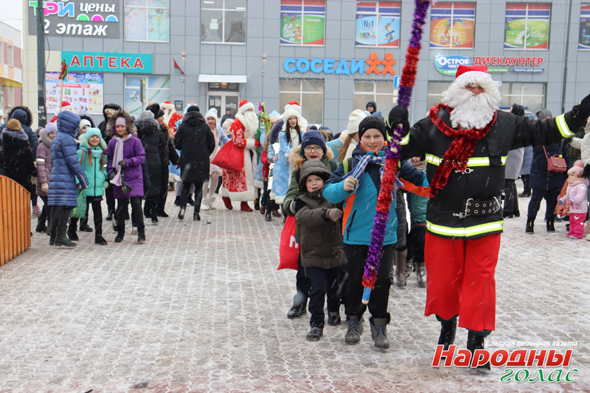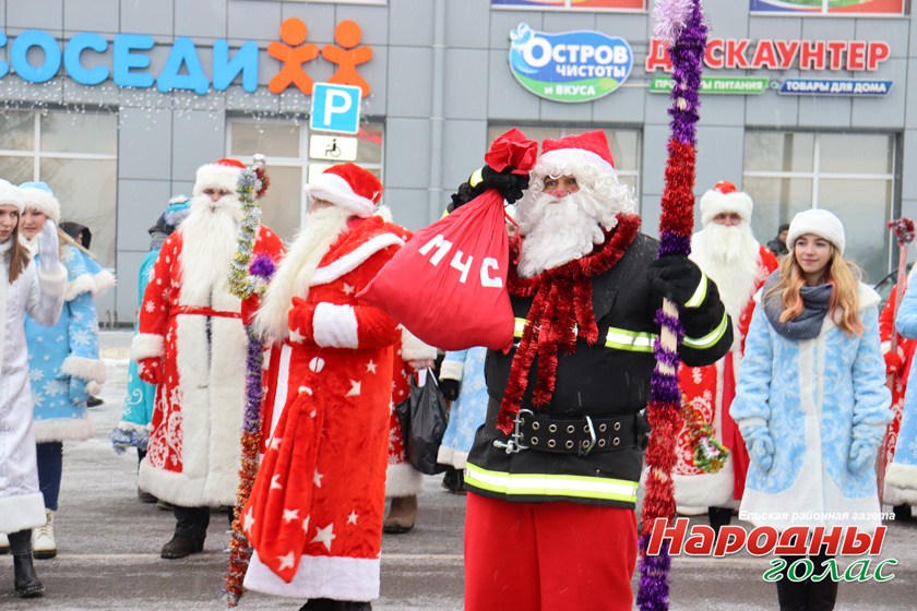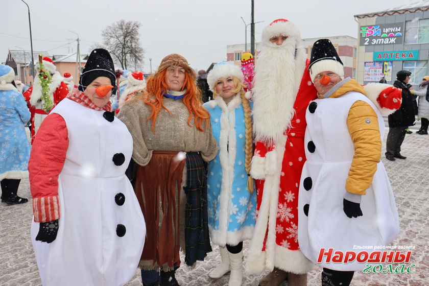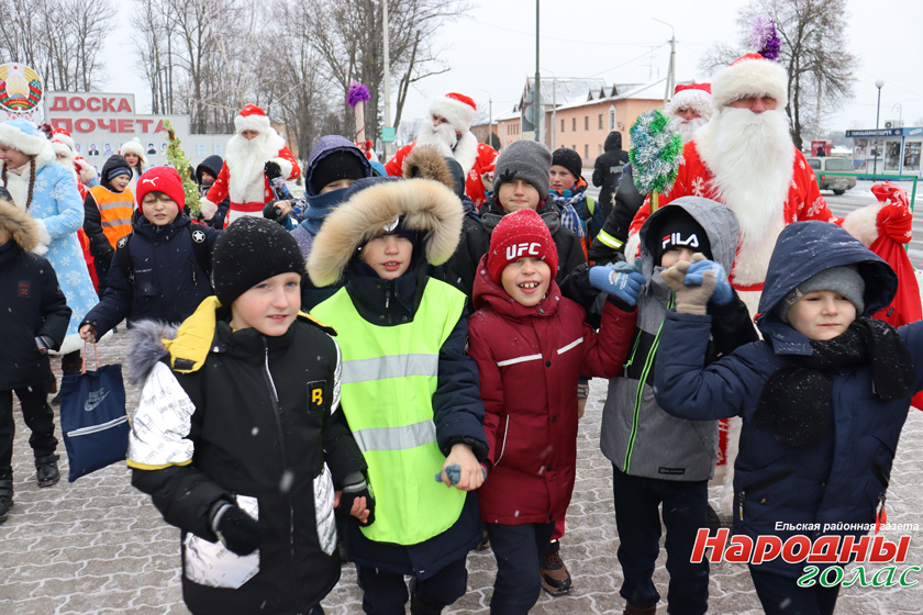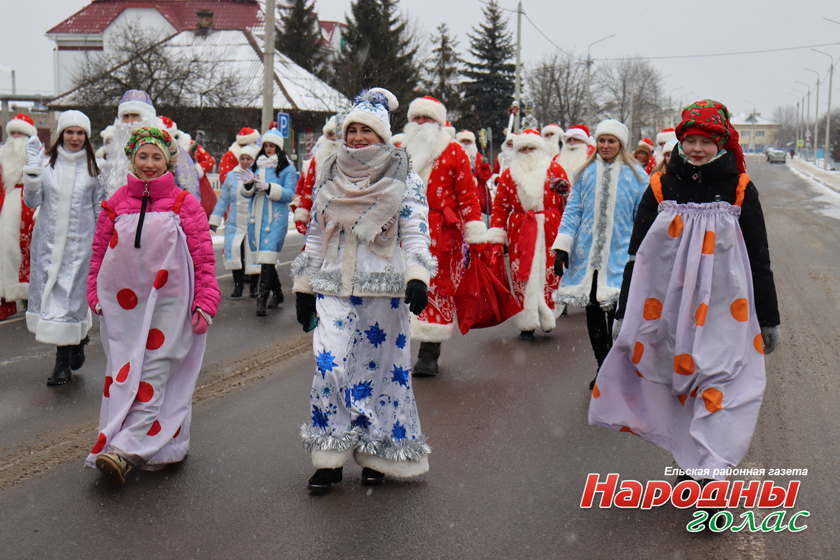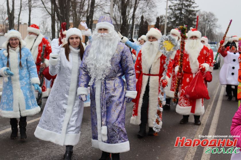 Сегодня в Ельске состоялось традиционное театрализованное шествие Дедов Морозов, Снегурочек и других сказочных персонажей.