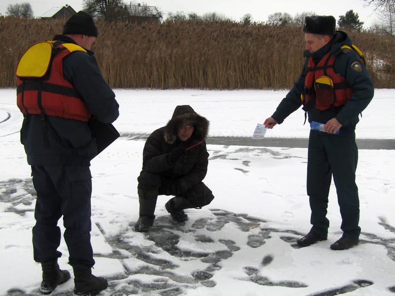 ФОТОФАКТ: Ельские спасатели и ОСВОД продолжают проводить рейды по зимним озерам Ельщины и рассказывать о правилах безопасности рыбакам