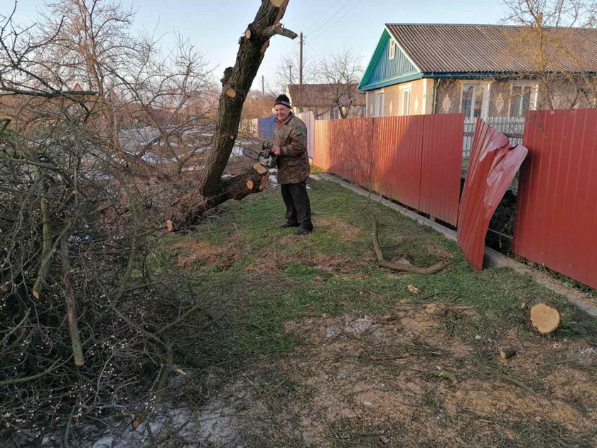 Ельчане уже начали убирать упавшие от сильного ветра деревья.