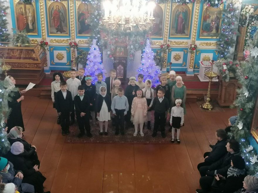 В минувшее воскресенье в Воскресной школе, которая действует при Храме Святой Живоначальной Троицы в Ельске, прошел утренник. Дети в стихах и песнях прославляли Рождество Христово. Они подготовили для прихожан Храма театрализованное представление.