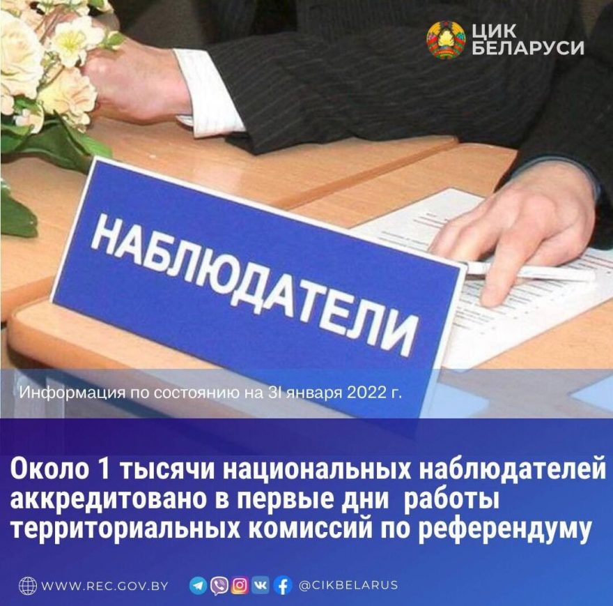 Территориальные комиссии по референдуму к настоящему моменту аккредитовали 875 национальных наблюдателей, сообщили в ЦИК.