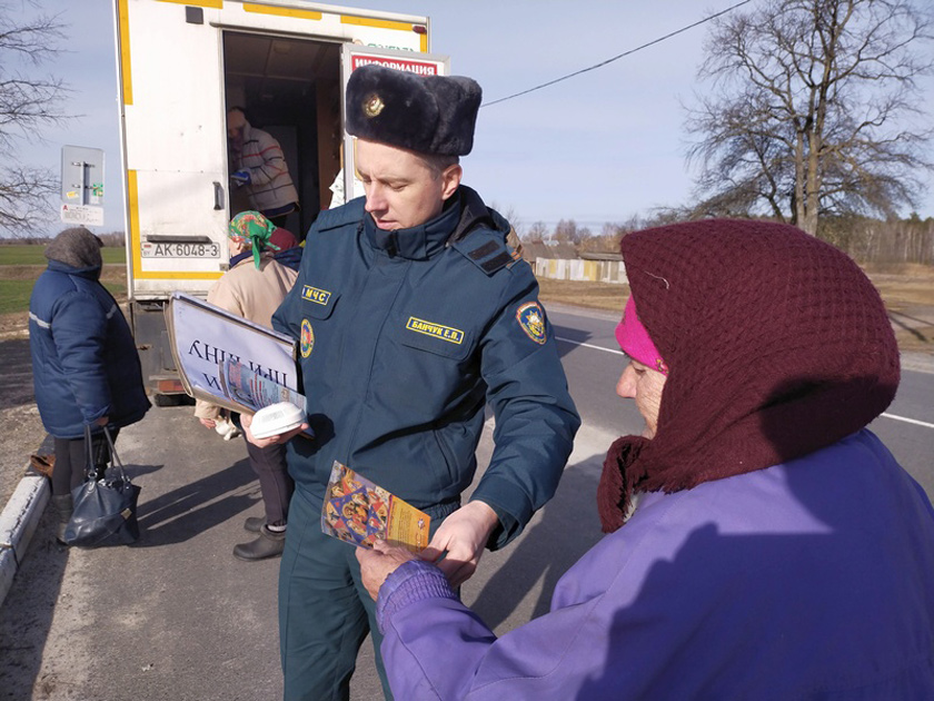 Так, в населенных пунктах Ельского района, двигаясь по маршруту следования автомагазина, спасатели в беседах с сельчанами рассказали о количестве пожаров и причинах их возникновения, привели примеры трагических последствий человеческой беспечности. Жителям деревень дали советы, как обезопасить себя и свой дом от пожара.