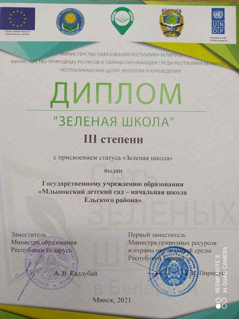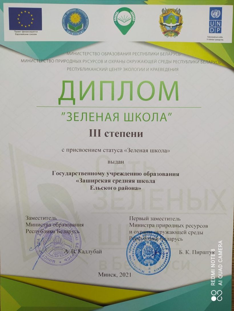 Поздравляем педагогические коллективы Млынокского детского сада-начальной школы Ельского района и Заширской средней школы с вручением дипломов третьей степени на присвоение статуса «Зелёная школа».