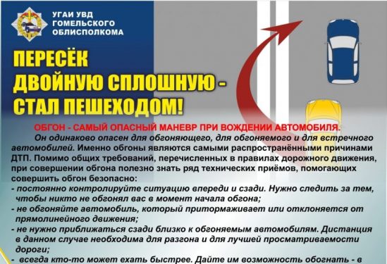 Согласно Кодексу Республики Беларусь об административных правонарушениях, водителю, нарушившему правила обгона либо выехавшему на полосу встречного движения, когда правилами дорожного движения это запрещено, предусмотрена ответственность в виде штрафа в размере от 2 до 10 базовых величин с лишением права управления транспортными средствами сроком до 1 года или без лишения.