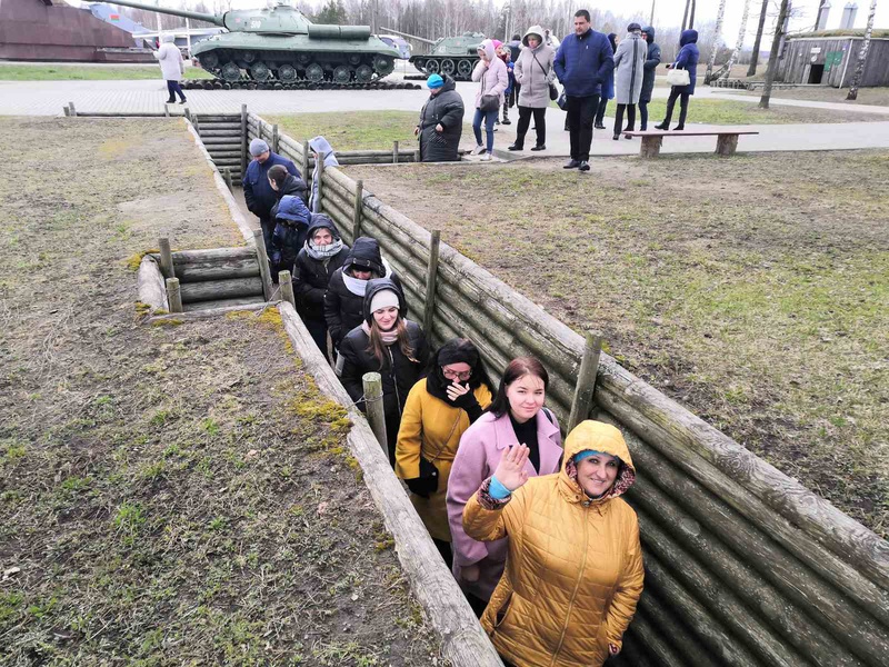 Затем группа направилась к мемориалу, посвящённому освободительной войсковой операции «Багратион», который открылся в 2014 году. Экскурсовод очень интересно и увлекательно рассказал о белорусской наступательной операции «Багратион» — одной из крупнейших военных операций за всю историю человечества. В ходе данной операции была освобождена территория Беларуси, восточной Польши и часть Прибалтики, а также практически полностью разгромлена германская группа «Центр». Во время экскурсии по комплексу мы увидели часовню, несколько объектов, включая полевой блиндаж командующего армией, инсталляцию «Тяжёлый танк пересекает по гати болотистую местность», посетили музей.