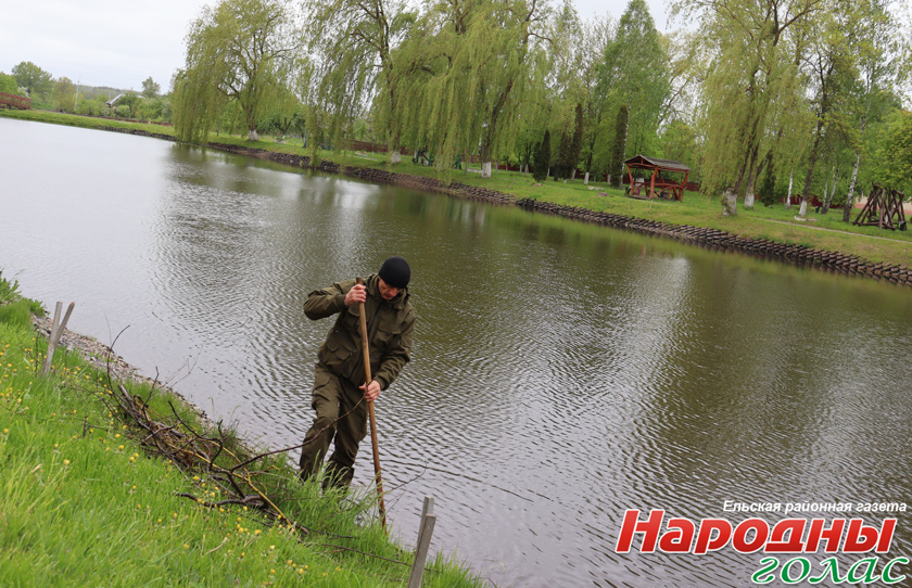 ФОТОФАКТ: Ельские коммунальники очищают городской пруд от мусора