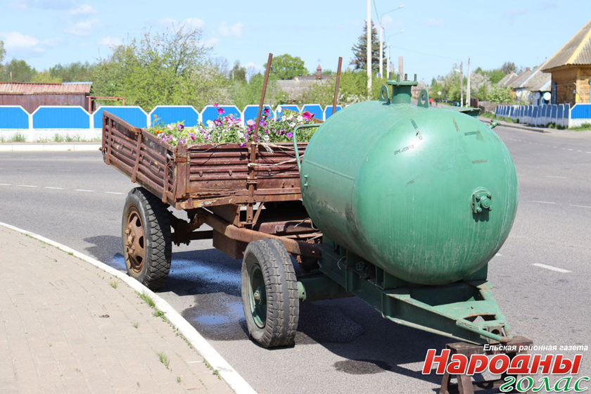 Ельские коммунальники высаживают на городских клумбах цветы. Рассада цветов — из теплицы КЖЭУП «Ельское».