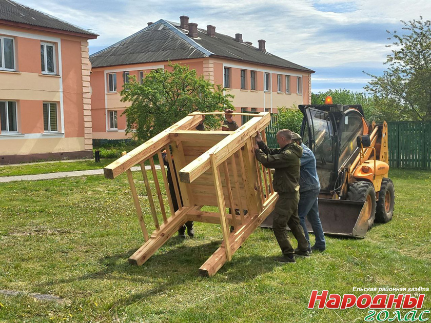 В Ельске по ул. Козинцева рядом с торговым павильоном «Жар-птица» скоро появится новая детская площадка. Прямо сейчас работники КЖЭУП «Ельское» занимаются установкой конструкций для детской горки и песочницы.