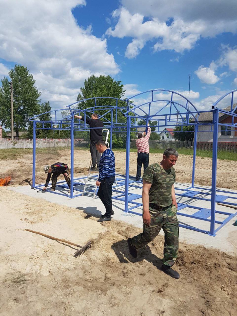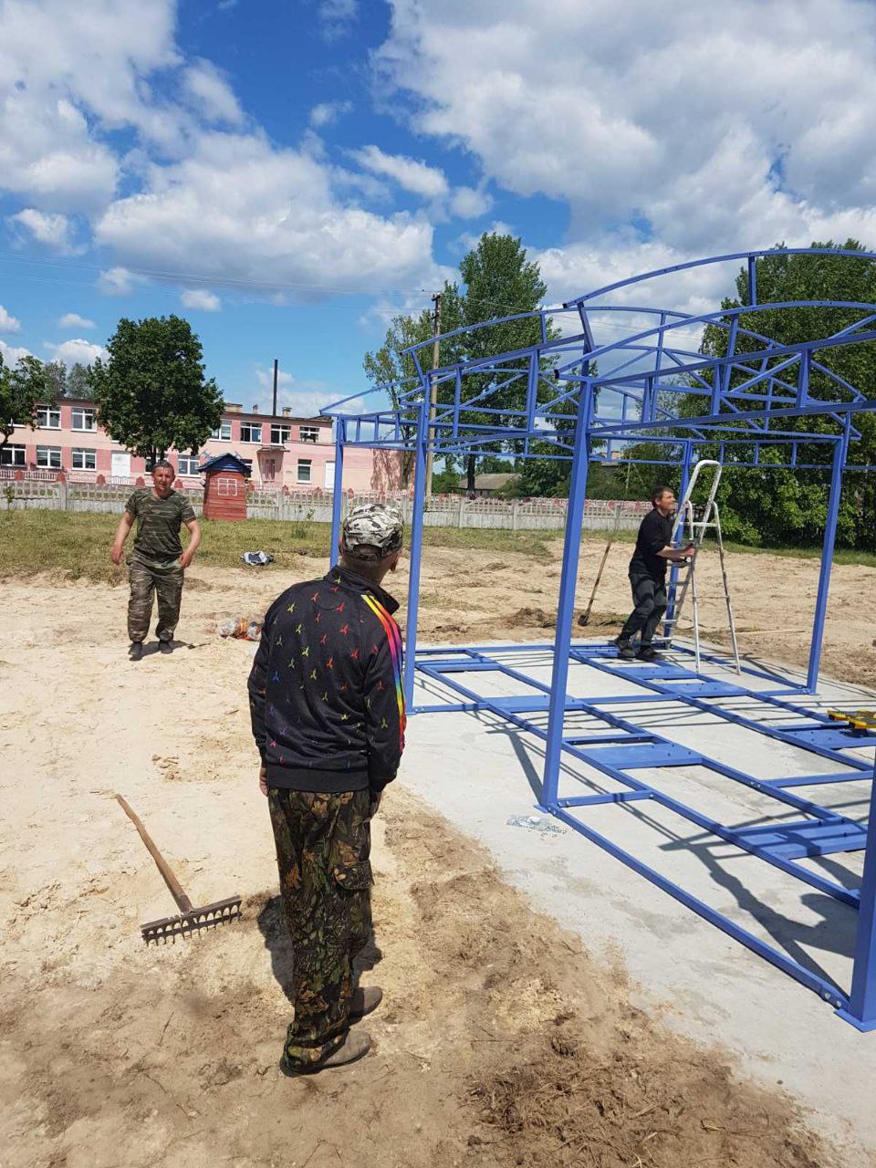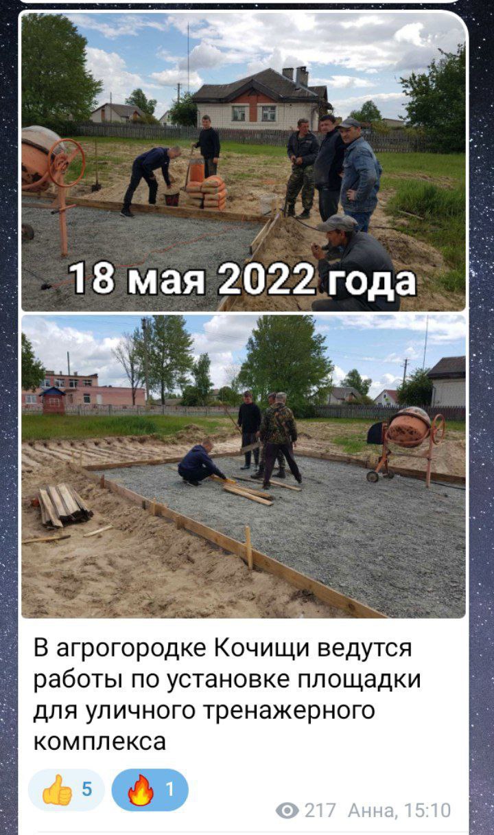 В Кочищанском сельсовете идёт активная работа по установке тренажерного комплекса. А ведь 18 мая ещё только заливали под него площадку… Молодцы!