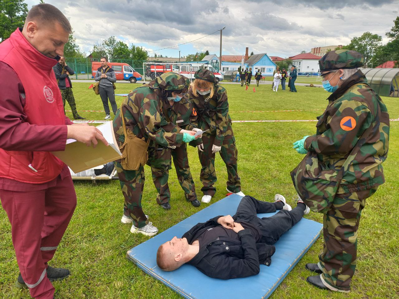 На первом этапе проверяли табельное оснащение и умение санитарного формирования пользоваться предметами табельного имущества. Второй этап включал в себя проверку работы сандружины в очаге комбинированного поражения (на территории 20*30 м). Третий этап — план действий в очаге химического поражения.