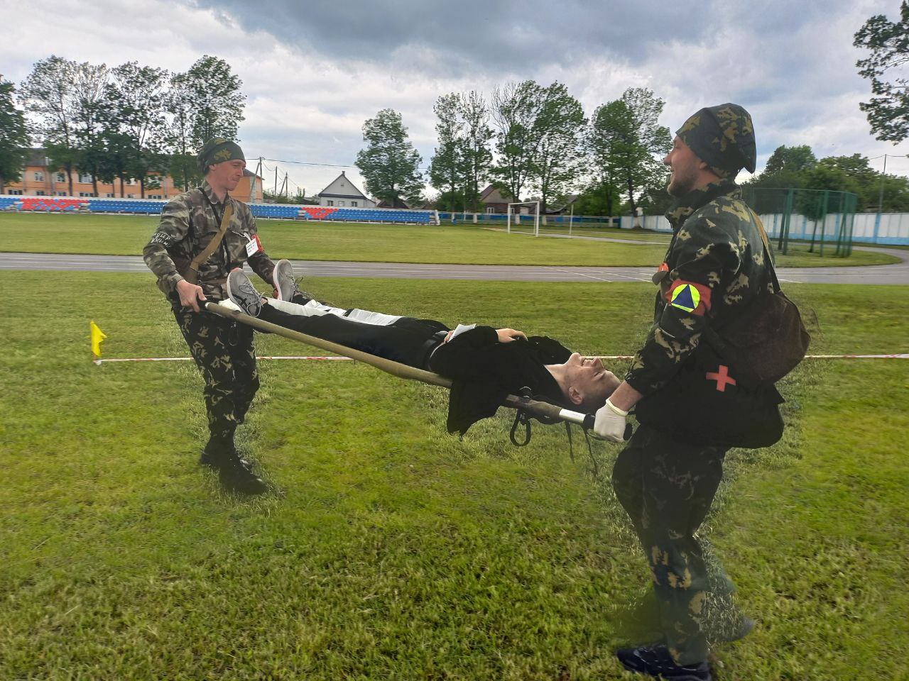 Районные соревнования санитарных дружин гражданских формирований гражданской обороны прошли на стадионе «Центральный» в Ельске.