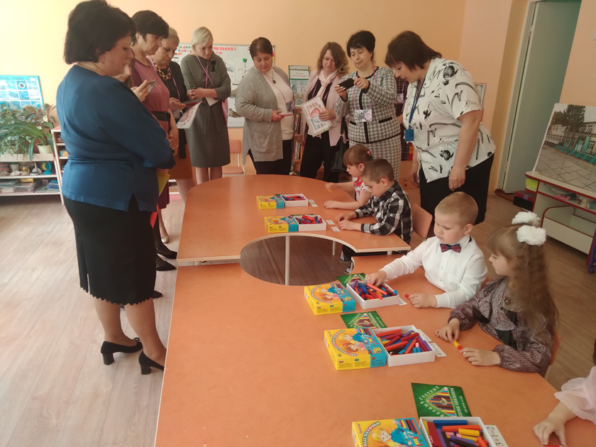 Руководители учреждений образования, реализующих учебную программу дошкольного образования, посетили занятия по образовательным областям учебной программы дошкольного образования с использованием современных образовательных технологий. Участникам мероприятия были представлены выставки игр и игровых пособий для работы с детьми дошкольного возраста. Педагогическим коллективом презентованы фрагменты образовательных проектов, реализованных в учреждении образования в 2021/2022 учебном году: «Современные образовательные технологии», «Ранняя профориентация детей дошкольного возраста «Славим человека труда», «Победа. Память», «Орден в моей семье».