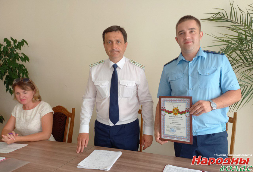За добросовестное исполнение служебных обязанностей, высокий профессионализм, личный вклад в укрепление законности и в связи со 100-летием образования органов прокуратуры Республики Беларусь объявлена Благодарность от имени прокурора области заместителю прокурора Ельского района Михаилу Хотынюку.
