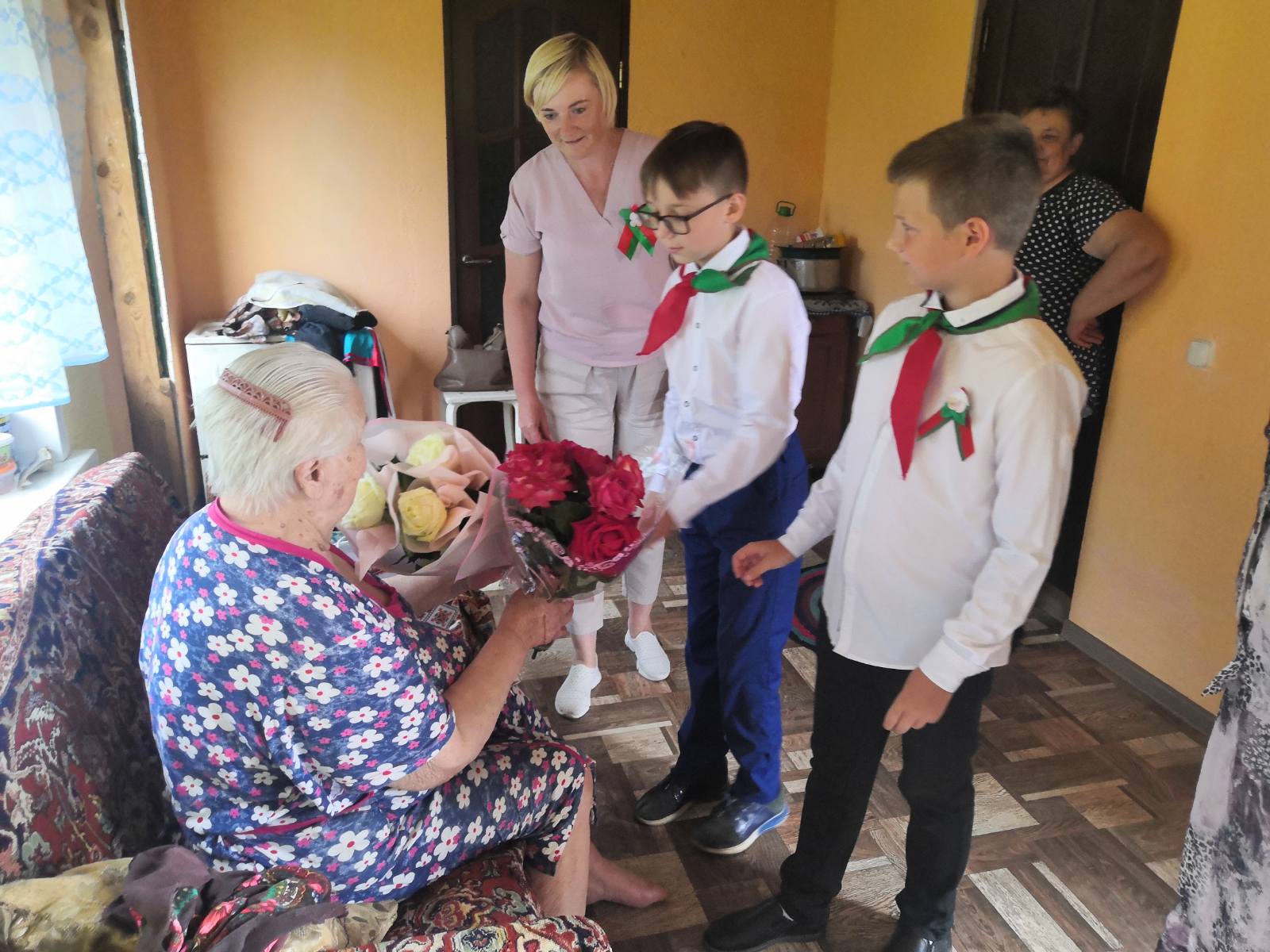 Пожелали ветерану здоровья, благополучия, заботы, внимания родных и близких, а в знак благодарности вручили цветы и подарок.