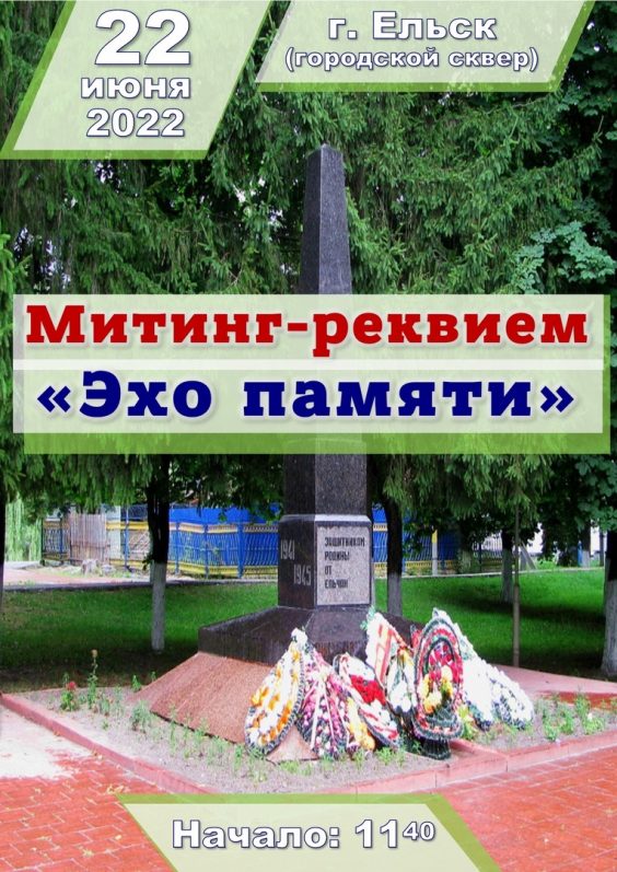 Митинг-реквием «Эхо памяти» пройдет 22 июня в Ельске