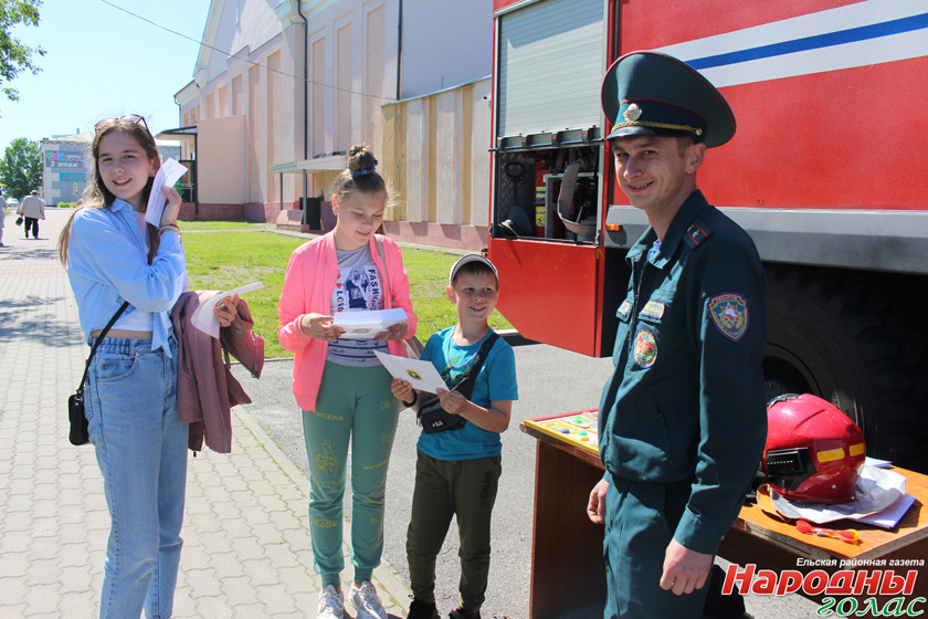 Стоит отметить, что с интересом ребята участвовали и в акции безопасности, организованной работниками Ельского РОЧС: отвечали на вопросы викторины, участвовали в конкурсах, получали приятные призы и фото на память.