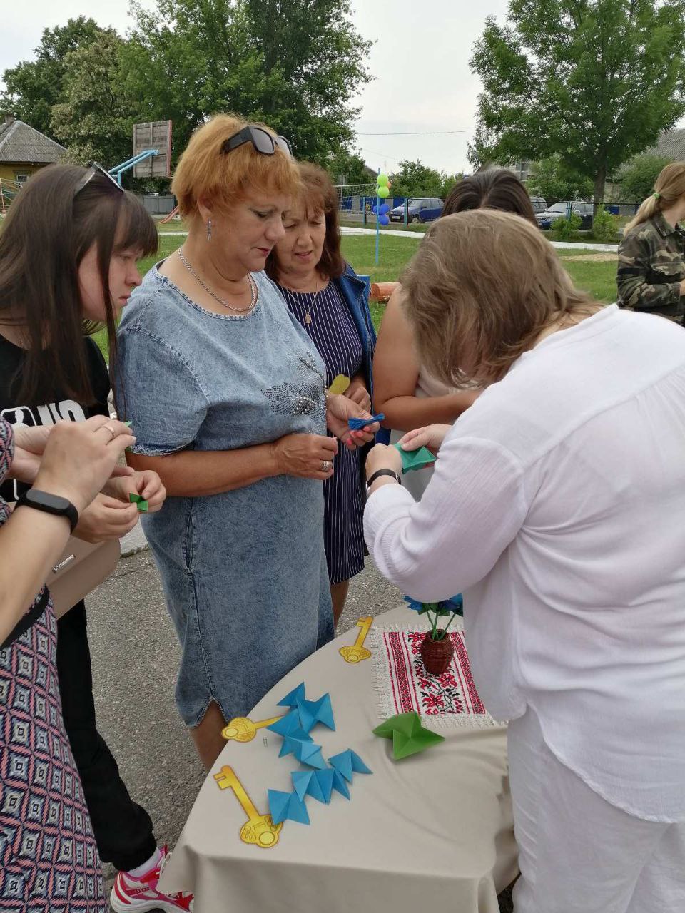 Гостей праздника — родителей, коллег-педагогов, ветеранов педагогического труда и др. — организаторы встречали креативно: вручали каждому ключик-пожелание на день и подготовили мастер-класс по изготовлению васильков из бумаги в технике оригами.