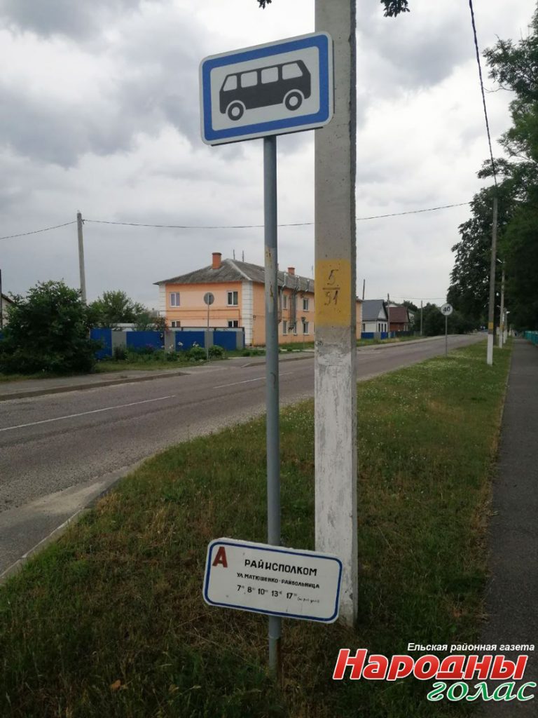 Проходя по улице 9 Мая в Ельске, около Белагропромбанка обращаешь внимание на остановочный пункт, где, чтобы узнать расписание движения городского автобуса, нужно поклониться земле.