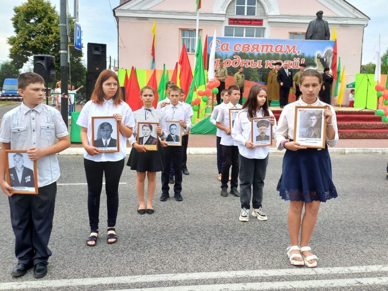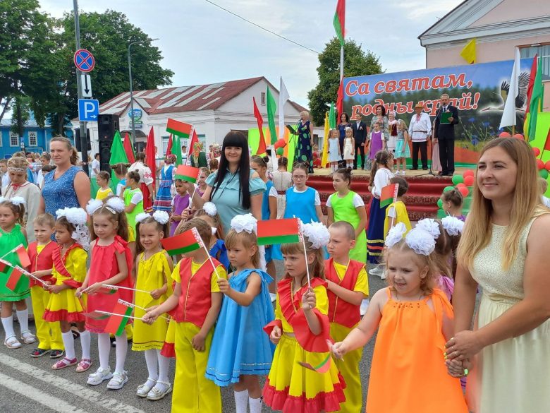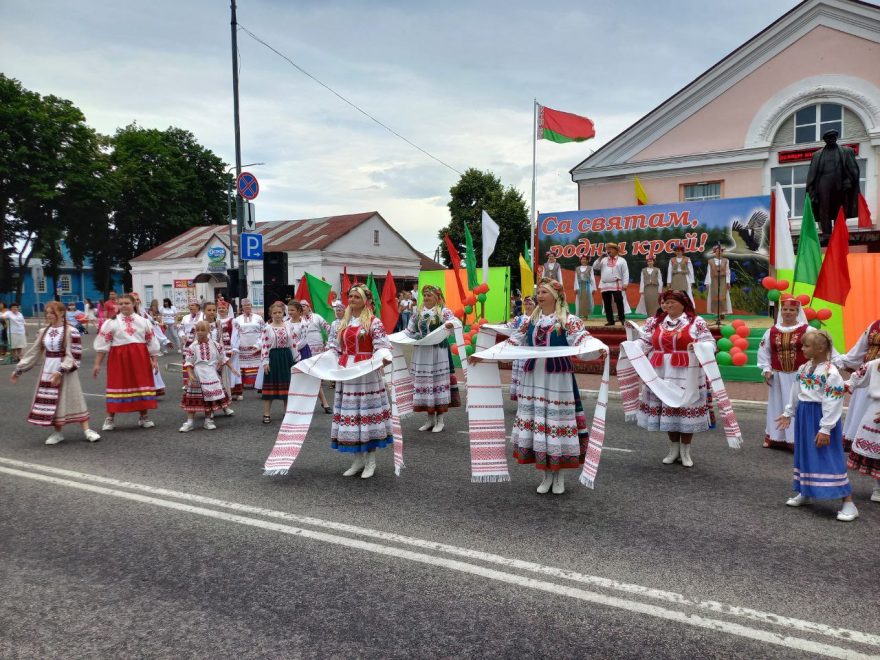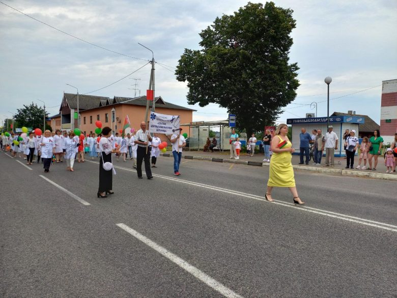 Шествие трудовых коллективов, демонстрация современной производственной и сельскохозяйственной техники, театрализованное представление «Любимая Беларусь!» прошел на центральной площади города Ельска.