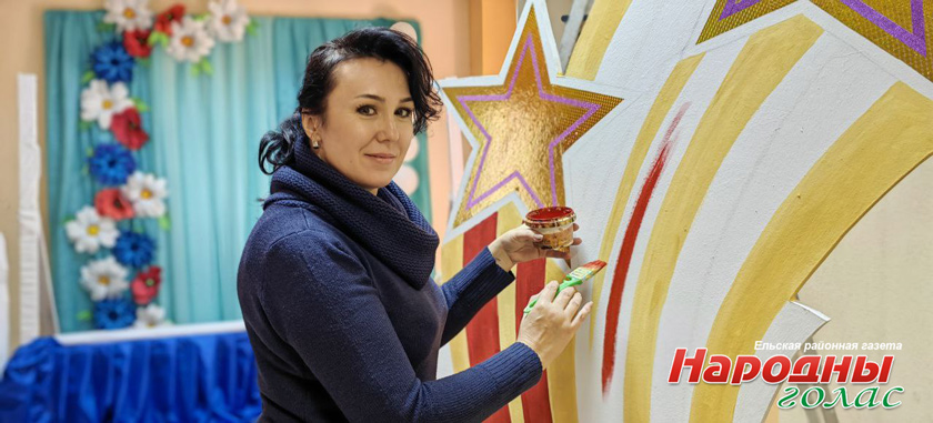 Одна из самых ярких вокалисток ГДК «Колос» Анна Захарова, художник-оформитель, работала над созданием праздничной декорации.
