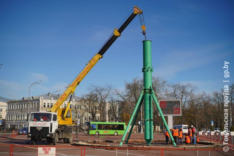 В Гомеле на площади Ленина начался монтаж главной новогодней ёлки