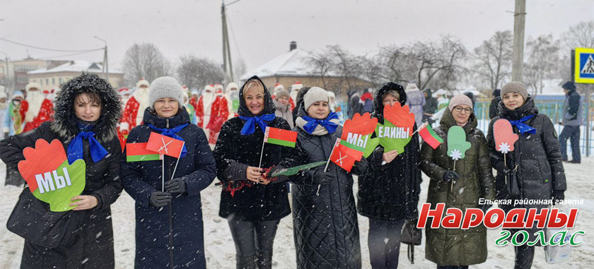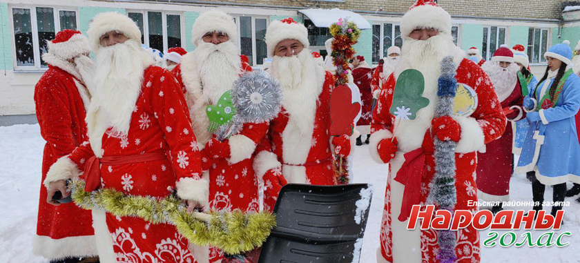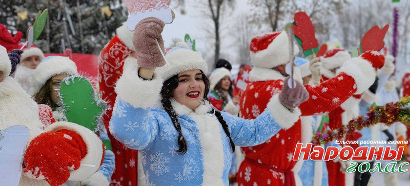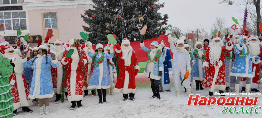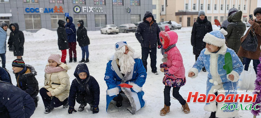 Деды Морозы, Снегурочки и другие сказочные персонажи исполнили зажигательный танец в центре Ельска. Кроме того, каждый мог сделать фото с волшебниками.