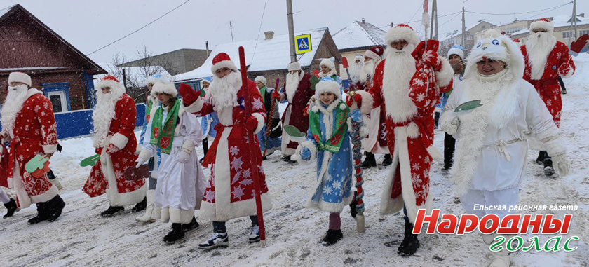 Новогоднее шествие, в котором приняло участие 22 Деда Мороза и Снегурочки, прошло по улице Ленинской и завершилось у зелёной красавицы возле ГДК «Колос».