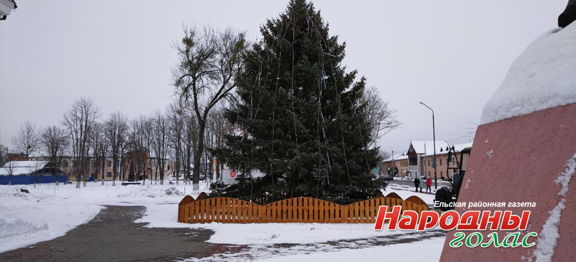 На аппаратном совещании председатель Ельского райисполкома Виктор Замостик поручил коммунальной службе установить в Ельске три новогодние елки. Их установили в центре города, а также на торговой площади в районе улицы 50 лет СССР и в микрорайоне Фабричный.