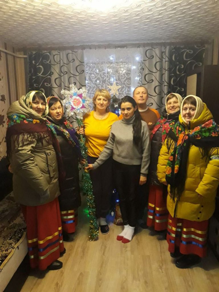 Участницы народного фольклорного ансамбля «Валошкі» пожелали счастья и блогополучия жителям аг. Валавск Ельского района.