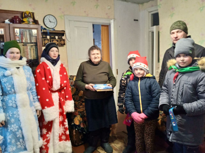Ребята посетили одиноко проживающих Степаниду Саввичну Червову и бывшую работницу школы Надежду Григорьевну Коркуц. По просьбе одиноких бабушек ребята оказали посильную помощь в уборке двора, доставке воды и дров в дом.