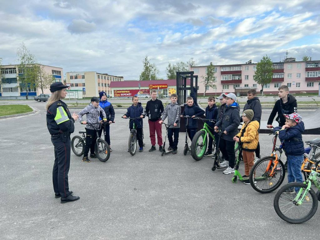 В рамках единого Дня безопасности «На вело, мото и мопеде заедем в лето без трагедий» сотрудники Госавтоинспекции провели профилактическую беседу с ребятами, которые катаются на скейт-бордной площадке в Ельске.