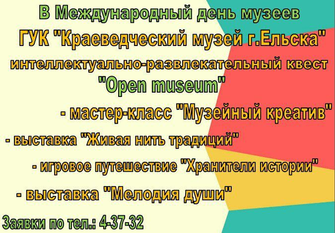Какую программу предлагает Ельский краеведческий музей для посетителей в Международный день музеев? Смотрим афишу!