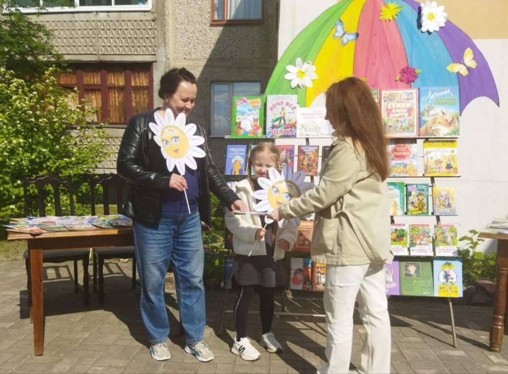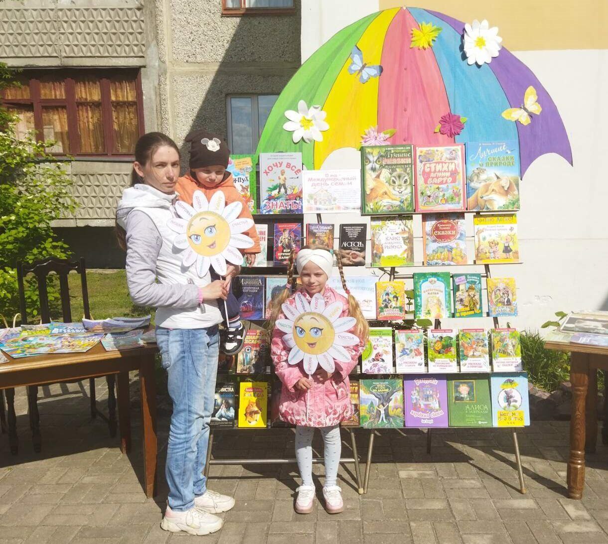 Ельская районная центральная библиотека накануне Дня семьи провела уличную акцию «С книгой под семейным зонтиком».