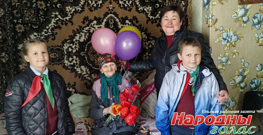 Активисты района совместно с председателем Ельского районного Совета депутатов Оксаной Захарченко, председателем Кочищанского сельсовета, навестили в аг. Кочищи узницу войны Варвару Дмитриевну Сорокину.