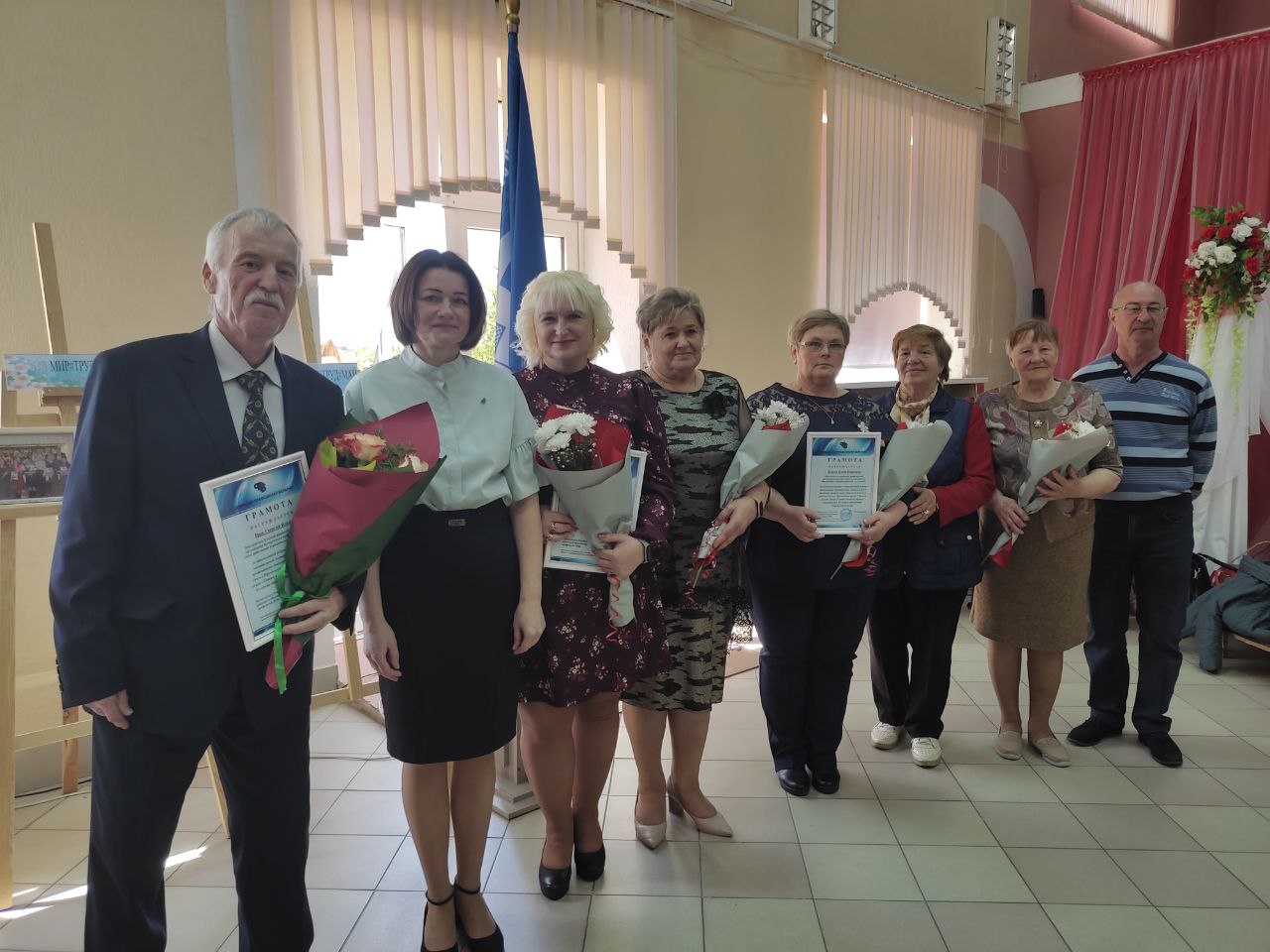 Сегодня в городском доме культуры «Колос» состоялось торжественное мероприятие «Цветущий май»,приуроченное Празднику труда-1 Мая. В рамках мероприятия председателем Ельского районного объединения профсоюзов Еленой Захаренко проведена акция»Славим человека труда». В рамках акции награждены трудовые династии Ельщины: династия Ельской мебельной фабрики — семья Кондрачук и педагогическая династия — семья Демковы-Плех-Фей, почествованы наши ветераны труда- Лешкевич Мария Александровна и Алексеенко Валентин Васильевич, социальный партнёр — Косенко Василий Иванович, профсоюзные активисты — Грищенко Андрей Геннадьевич, Засинец Неля Николаевна, Шикун Елена Ивановна и Цык Георгий Ильич. Мир!Труд!Май!