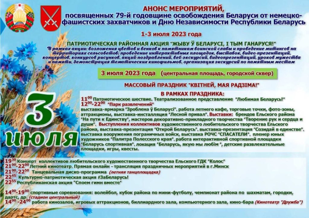 ЕЛЬЧАН И ГОСТЕЙ ГОРОДА ПРИГЛАШАЕМ НА ПРАЗДНИЧНЫЕ МЕРОПРИЯТИЯ, КОТОРЫЕ ПРОЙДУТ 3 ИЮЛЯ!